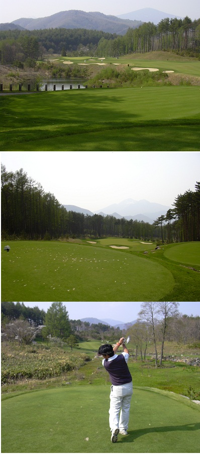 写真トップは、設計者が自身の中でも最高傑作だと言っている、断崖越えの名物3番ロングホール。